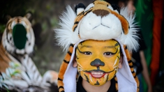 3月17日,在馬來西亞吉隆坡,一名兒童化上“老虎妝”。 新華社發(張紋綜攝)
