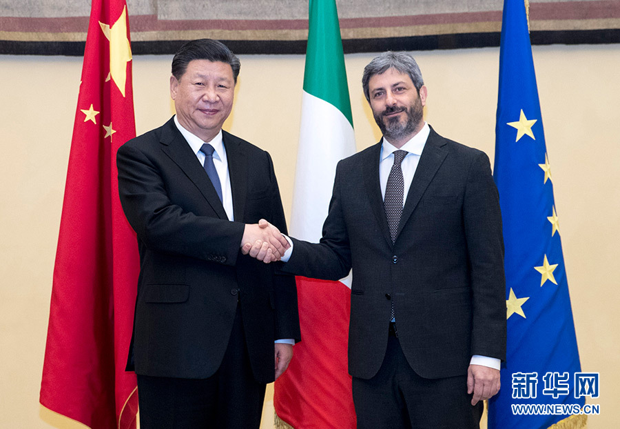 3月22日,國家主席習近平在羅馬會見意大利眾議長菲科。新華社記者 王曄 攝