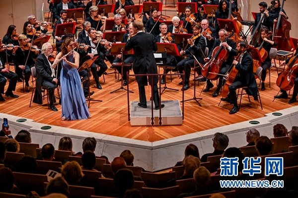 4月13日,尼娜·布赫霍爾策在德國柏林交響樂團“明日之星”演奏會上演奏。 新華社記者 連振 攝