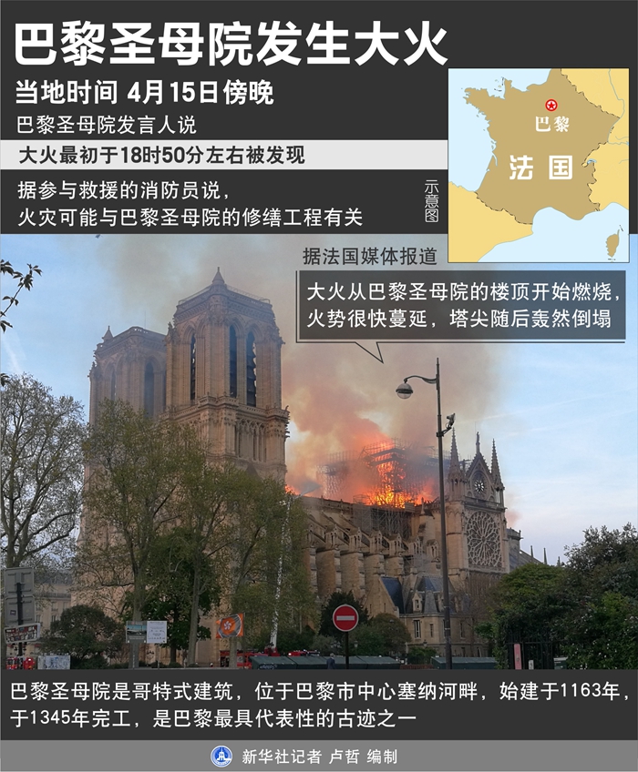 新華社巴黎4月16日電 題:巴黎圣母院塔尖在大火中倒塌