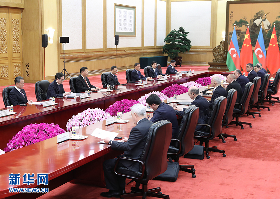 4月24日,國家主席習近平在北京人民大會堂會見阿塞拜疆總統阿利耶夫。 新華社記者 王曄 攝
