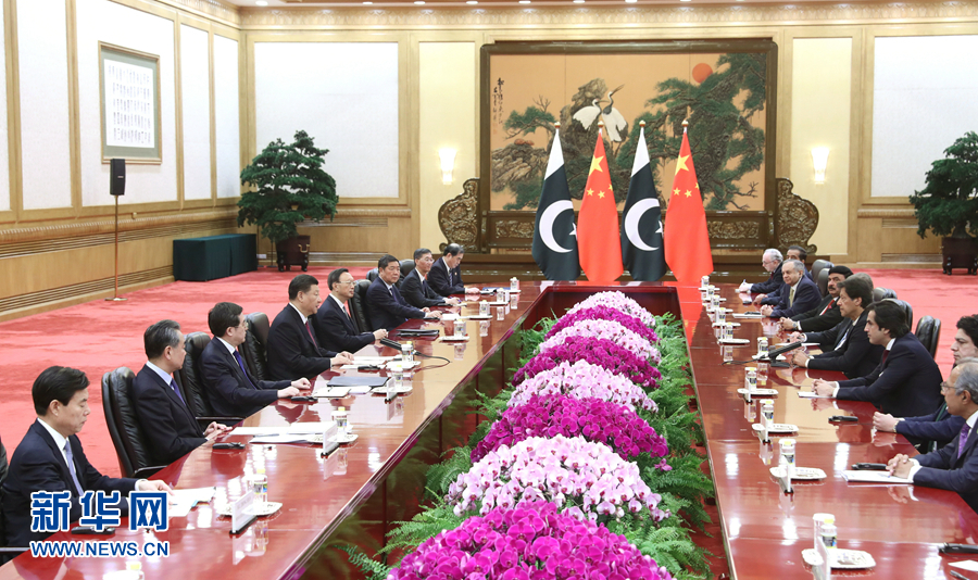 習近平指出,總理先生去年11月訪華期間,雙方就中巴關系發展達成一系列重要共識。當前,中巴經濟走廊建設、金融、貿易等方面合作都取得了重要進展。下階段,中巴雙方要繼續努力,把全天候的戰略合作不斷推向前進。雙方要深化高層交往和相互支持,加強戰略溝通,在共建“一帶一路”框架內推動產能、基礎設施建設、民生、貿易等領域合作高質量發展。要繼續密切在國際地區事務中協調合作。