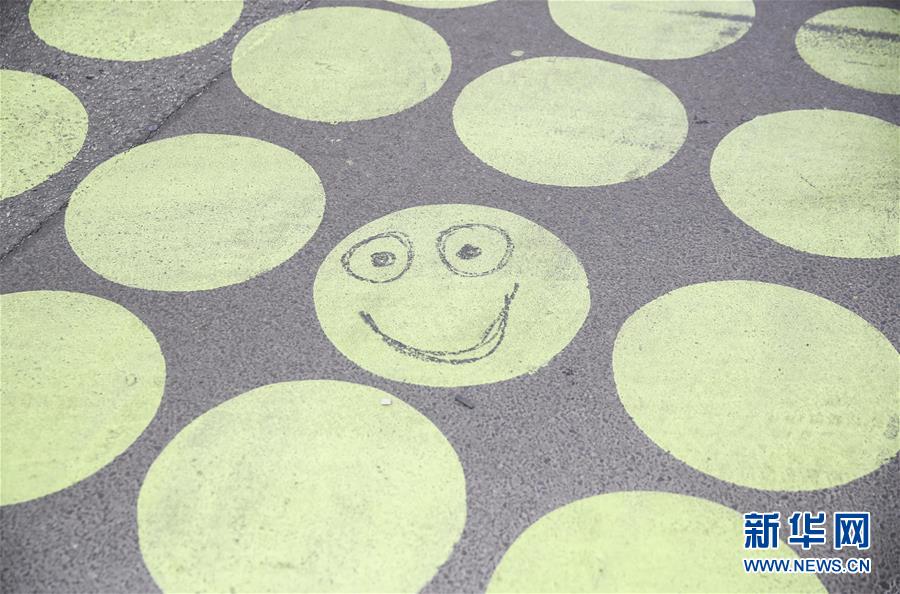 這是5月7日在德國克羅伊茨貝格區貝格曼大街拍攝的綠色斑點標識。 德國柏林克羅伊茨貝格區的貝格曼大街近日開始試用新的綠色斑點安全道路標識。該種新標識試用于一段限速每小時20公里的路段,旨在用一種全新的方式提示過往車輛按規定車速行駛。 新華社記者單宇琦攝
