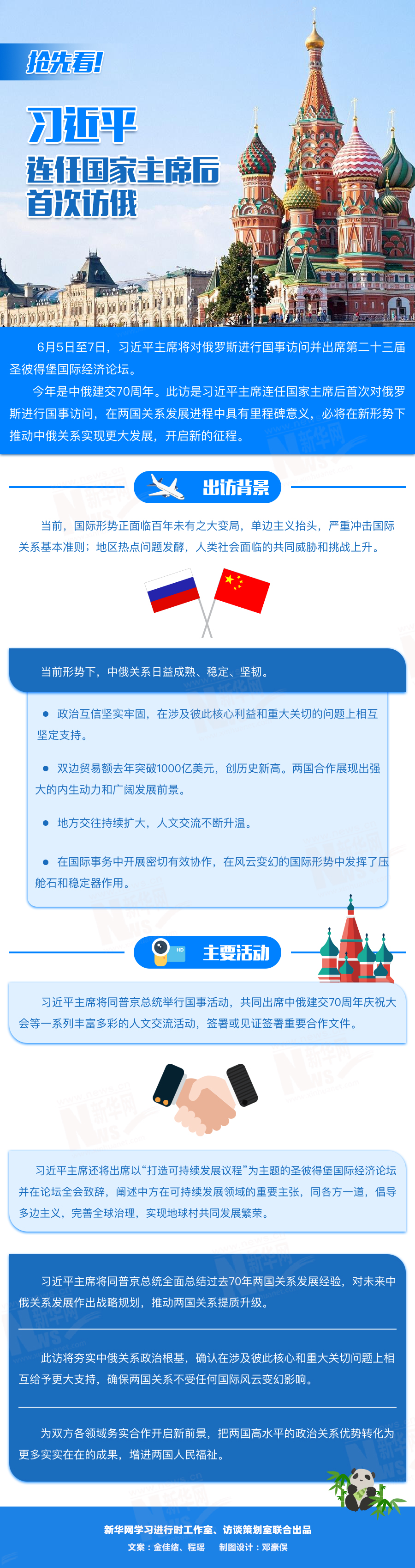 訪問期間,習(xí)近平主席還將出席圣彼得堡國際經(jīng)濟論壇,在論壇全會致辭,闡述中方在可持續(xù)發(fā)展領(lǐng)域的重要主張,同各方一道,倡導(dǎo)多邊主義,完善全球治理,實現(xiàn)地球村共同發(fā)展繁榮。