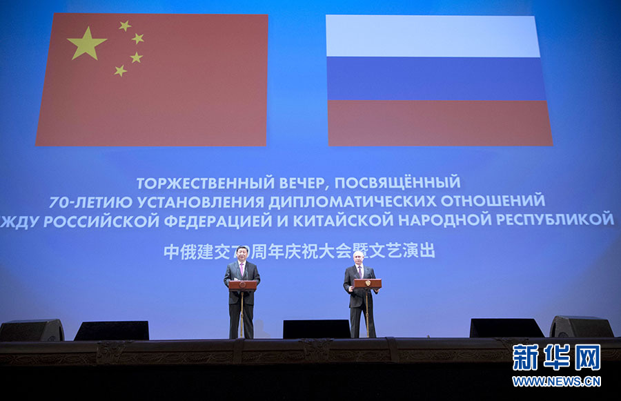 6月5日,國(guó)家主席習(xí)近平和俄羅斯總統(tǒng)普京在莫斯科大劇院共同出席中俄建交70周年紀(jì)念活動(dòng)。 新華社記者 李學(xué)仁 攝