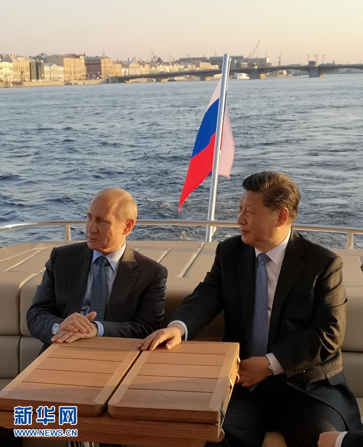 6月6日,國家主席習近平在圣彼得堡同俄羅斯總統普京再次舉行會晤。普京邀請習近平共同乘船游覽涅瓦河。新華社記者 李學仁 攝