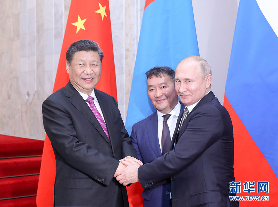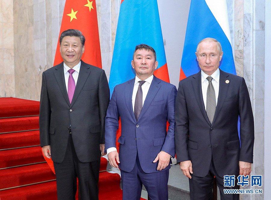 習近平強調,中俄蒙三國毗鄰而居,是山水相連的好鄰居、守望相助的好伙伴,開展三方合作具備先天地緣優勢和深厚傳統積淀。去年6月我們在青島舉行三國元首第四次會晤以來,三方密切溝通協作,三方合作逐步深入發展。