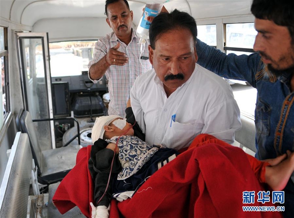 7月1日,在印控克什米爾查謨,一名受傷的乘客被送往醫院接受治療。新華社發