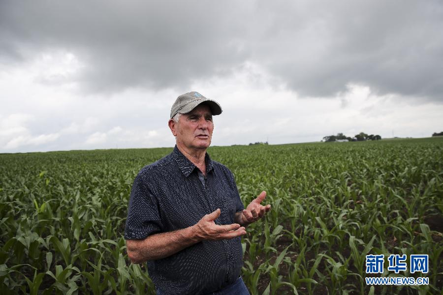 6月18日,在美國艾奧瓦州大西洋鎮,農場主比爾·佩雷特在自家的玉米地里接受采訪。?新華社記者 王迎 攝