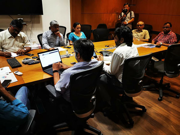 《印度教徒報》各個版面負責(zé)人于晚間召開碰頭會,商量確定內(nèi)容和版面設(shè)計。新華社記者趙博攝
