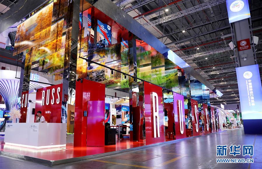 這是11月2日拍攝的第二屆中國國際進口博覽會國家展展區(qū)內(nèi)的俄羅斯館。 當日,第二屆中國國際進口博覽會國家展展館搭建工程基本完工,正在進行開幕前最后的展品布置工作。國家展展區(qū)內(nèi)的展館各具特色,靜候進博嘉賓。 新華社記者 方喆攝