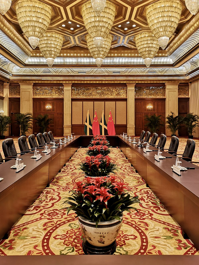 這是第一場(chǎng)會(huì)見開始前,會(huì)見廳的場(chǎng)景——