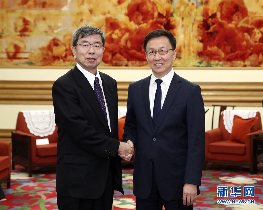 12月3日,中共中央政治局常委、國務(wù)院副總理韓正在北京中南海會(huì)見亞洲開發(fā)銀行行長中尾武彥。新華社記者 丁林 攝