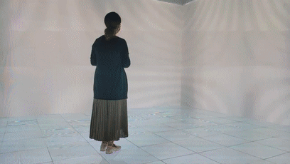 9月5日,新華網(wǎng)記者體驗(yàn)MR混合現(xiàn)實(shí)互動(dòng)演播廳。 李雪梅拍攝 劉鐘靈制作