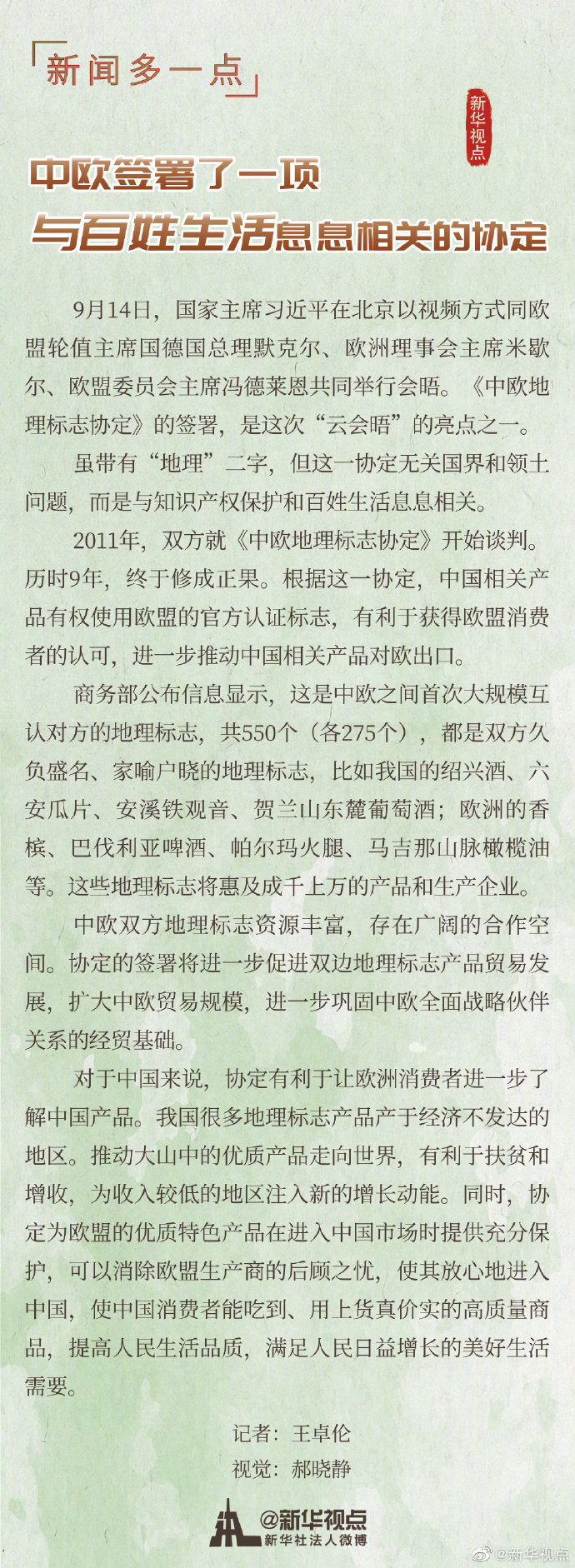 中歐簽署了一項與百姓生活息息相關的協定-新華網
