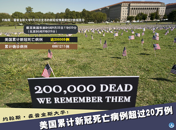 海報:約翰斯·霍普金斯大學(xué):美國累計新冠死亡病例超過20萬例 新華社記者 劉茜 編制
