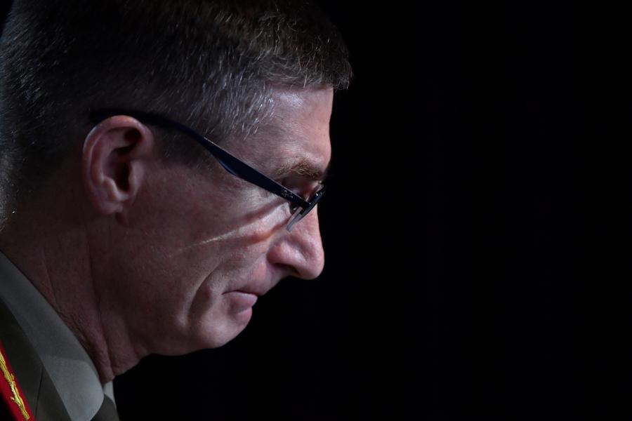 11月19日,在澳大利亞堪培拉,澳國防軍司令安格斯·坎貝爾公布調查報告。報告證實共有25名澳現役或前國防軍人員涉嫌在阿富汗參與殺害囚犯和平民,建議對其中19人展開刑事調查。(新華社/法新)