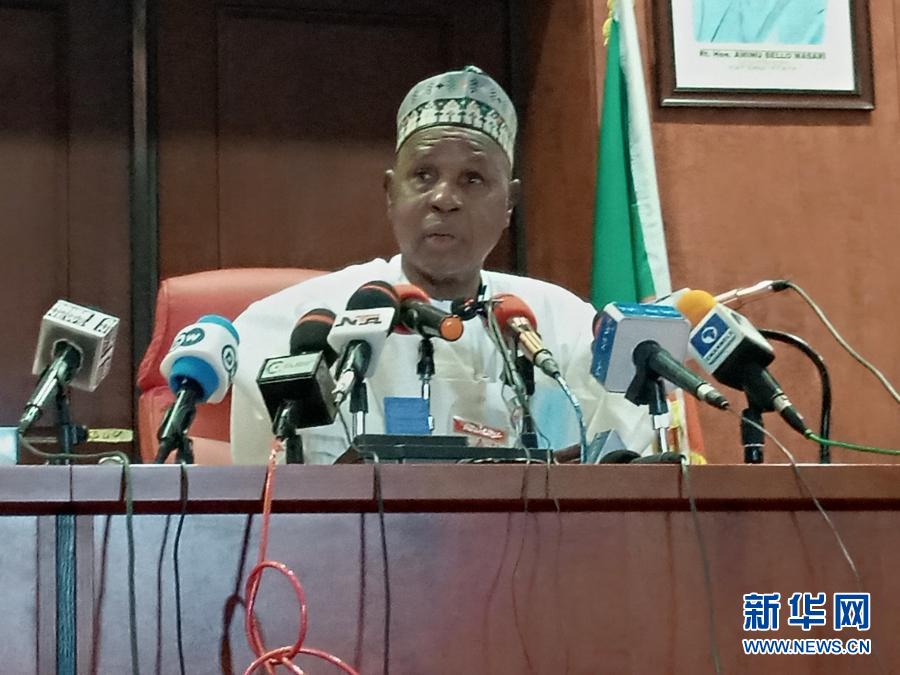 12月18日,在尼日利亞卡齊納州卡齊納市,卡齊納州州長阿米努·馬薩里出席獲釋學(xué)生的迎接儀式時講話(手機(jī)照片)。新華社發(fā)(奧瓦勒·易卜拉欣攝)