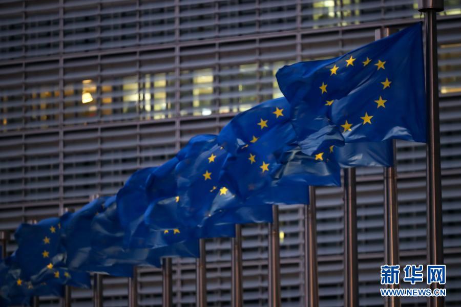 這是12月24日在比利時布魯塞爾拍攝的歐盟委員會總部大樓前的歐盟旗幟。新華社記者 張鋮 攝