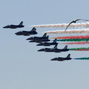 4月25日,意大利“三色箭”飛行表演隊在羅馬舉行的紀(jì)念儀式上噴出代表意大利國旗顏色的紅白綠三色煙霧。