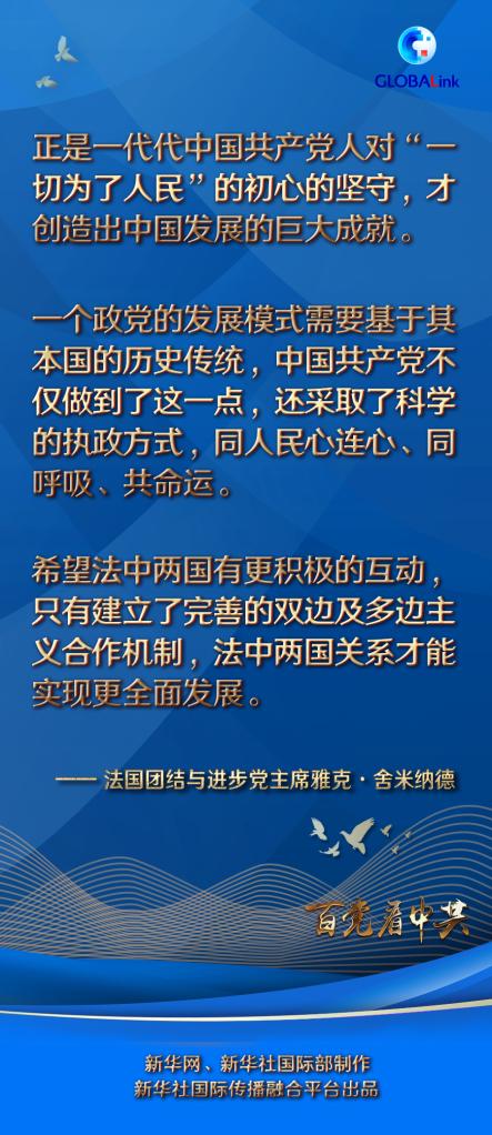 新華社北京5月24日電 法國團結與進步黨主席雅克·舍米納德日前在通過視頻連線接受新華社記者采訪時說,正是一代代中國共產黨人對“一切為了人民”的初心的堅守,才創造出中國發展的巨大成就。
