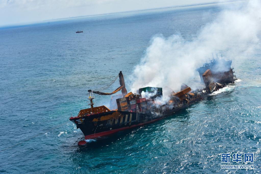 6月2日,斯里蘭卡總統戈塔巴雅下令將起火貨船“X-PRESS PEARL”號拖向遠離科倫坡港的深海區,以防引發更大的環境災難。“X-PRESS PEARL”號貨船5月20日抵達科倫坡港西北約9.5海里錨地時發出火警求救信號。斯里蘭卡海洋環境保護局官員5月28日表示,在科倫坡港附近起火燃燒的“X-PRESS PEARL”號貨船預計將會引發嚴重環境災難。新華社發(斯里蘭卡空軍媒體處供圖)