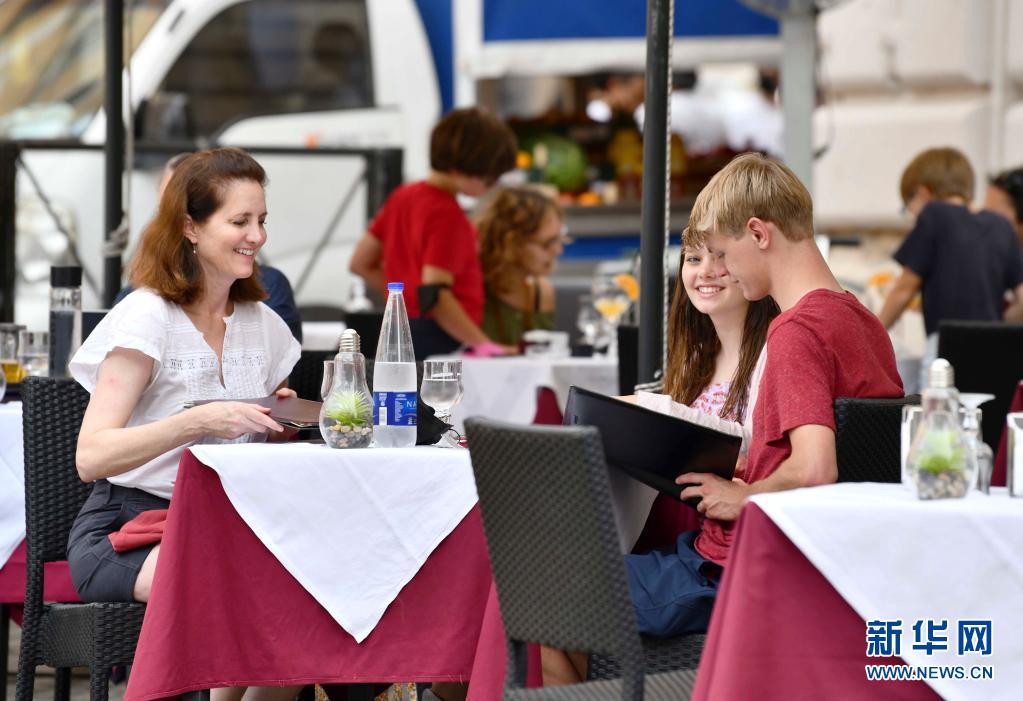 6月24日,人們在意大利羅馬一家餐館的戶外區(qū)域消費。