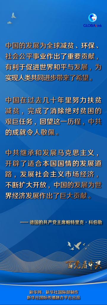 科伯勒表示,舊中國積貧積弱,中國共產黨領導人民取得了革命勝利,將中國建設成為繁榮富強的社會主義國家。如今,中共發展成為擁有9000多萬名黨員的大黨,黨的主張、政策得到廣大民眾擁護。