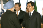 胡錦濤與辛格交談